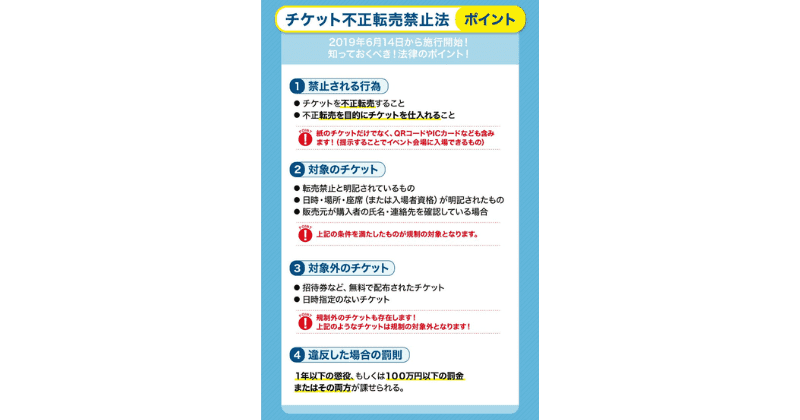 この法律は、チケットの高額転売による被害が大きくなったことによって制定されました。