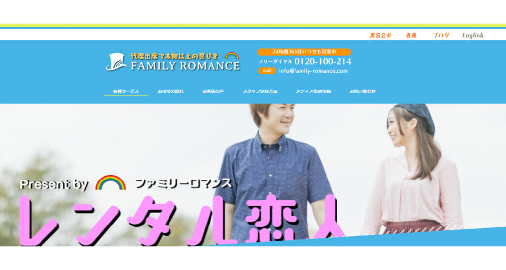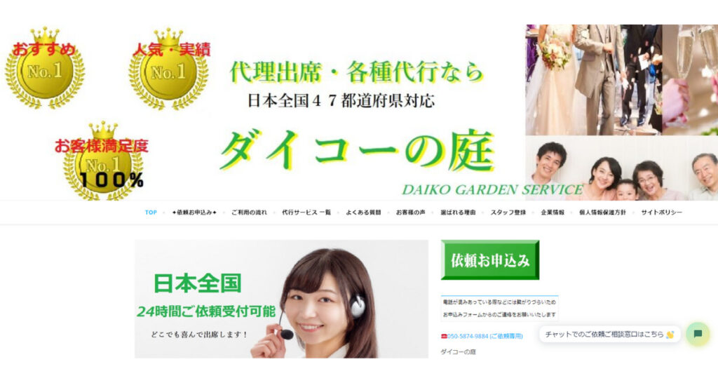 代行会社としては9年行っており、恋人代行だけでなく、結婚式の代理出席、家族親族代行、セミナー代理出席など様々なサービスが展開されています。