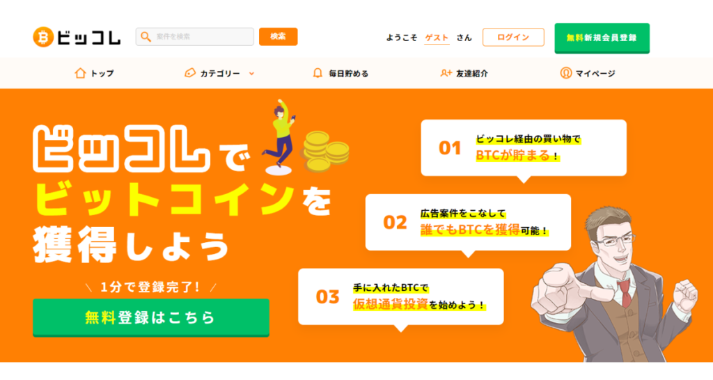ビッコレは、ポイントではなくビットコインが貯まるポイ活アプリです。