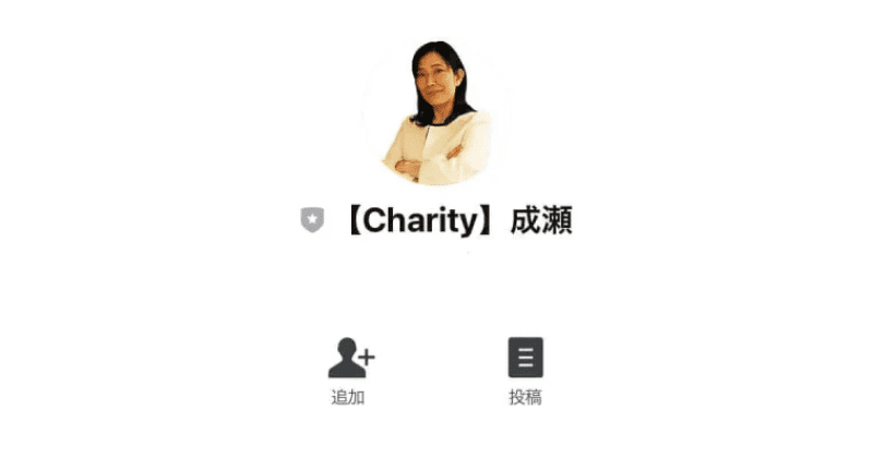 CHARITY(チャリティ)に参加すると、成瀬せなと名乗る人物が掲載されたページに行きます。
