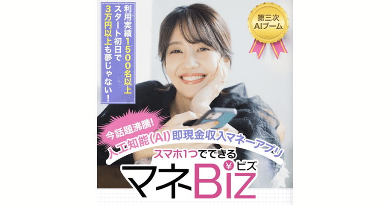 マネビズは、今話題沸騰中の人工知能(AI)を利用した即現金収入マネーアプリで、既に1500名もの方が利用しているという副業です。