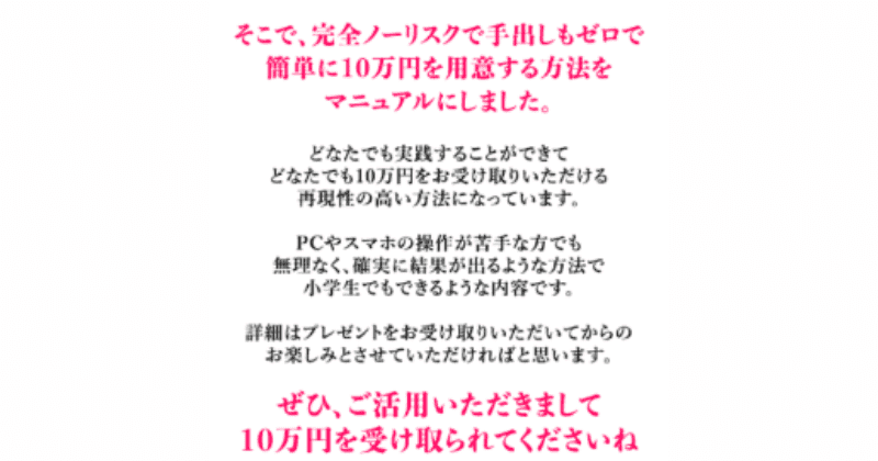 手順を進めていくことで上の画像のようなメッセージが送られてくるのですが、お分かりの通り10万円無料プレゼントとは少しずつ違う話になっていきました。
