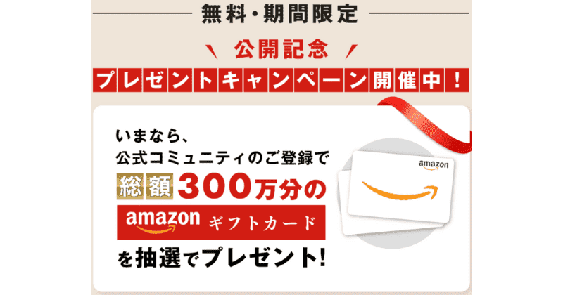 4.公式コミュニティへの登録で、総額300万円分のAmazonギフトを抽選で貰える