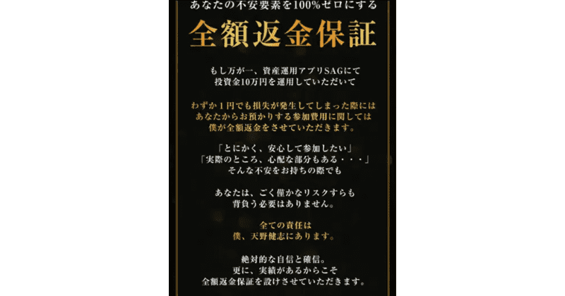 「わずか1円でも損失が発生してしまった際には、あなたからお預かりする参加費用に関しては僕が全額返金をさせていただきます。」