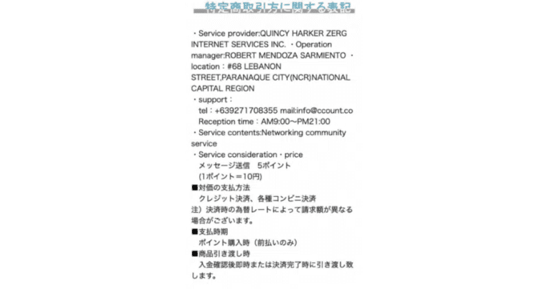また、プライバシーポリシーに関する記載も見受けられないので、個人情報がどのように扱われるのかも不明です。