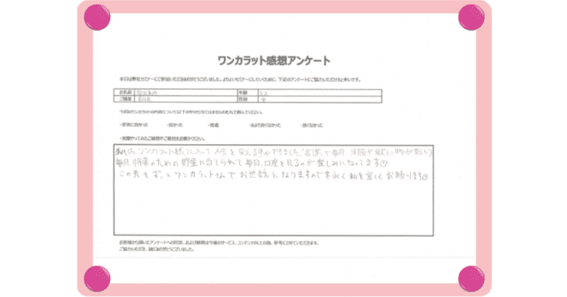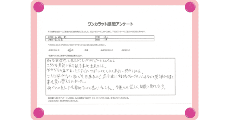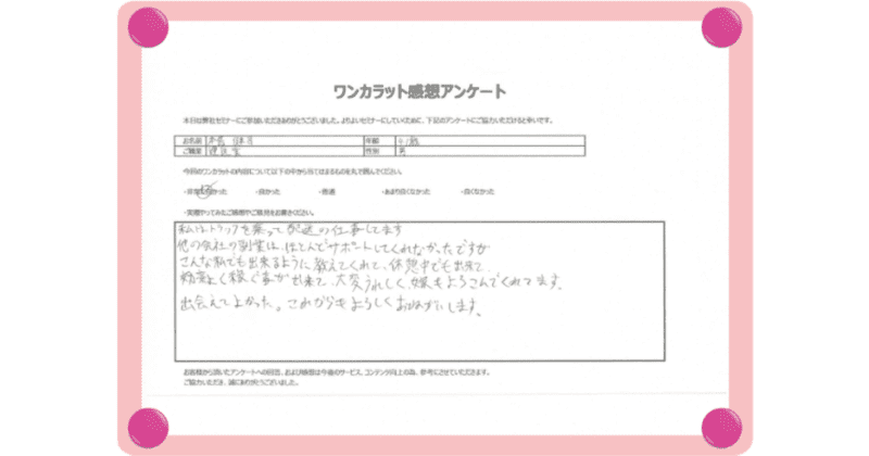 ランディングページには、参加者の声として「感想アンケート」が掲載されていました。