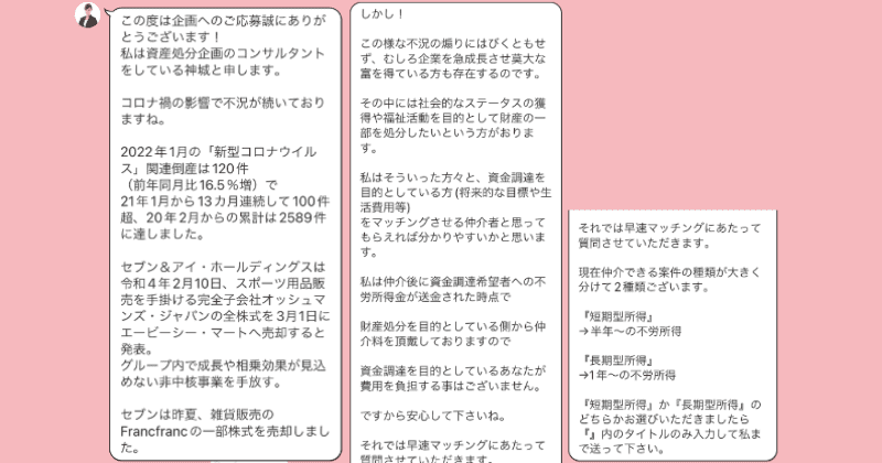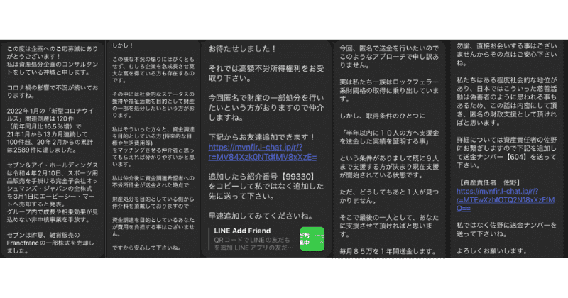 登録するアカウントが変わっているので怪しさしかありませんが、お分かりの通りメッセージ内容はほとんど変わりません。