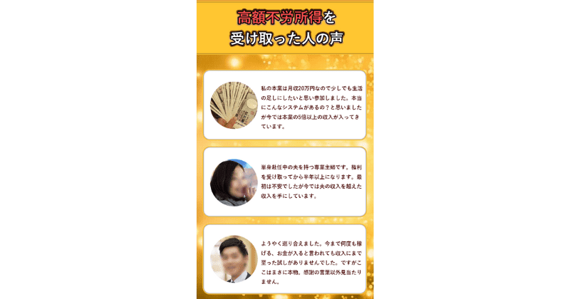 ランディングページにはお金を受け取った人の声が挙げられていました。