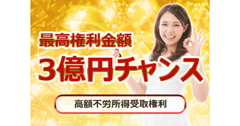 しかも、こんなに簡易的な条件で参加できるのにもかかわらず最高権利金額の3億円がゲットできるチャンスがあるとのことです。