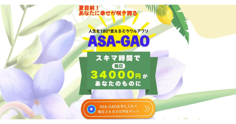 ASA-GAO/アサガオは、短時間の簡単作業で毎日34000円が稼げるというスマホ副業です。