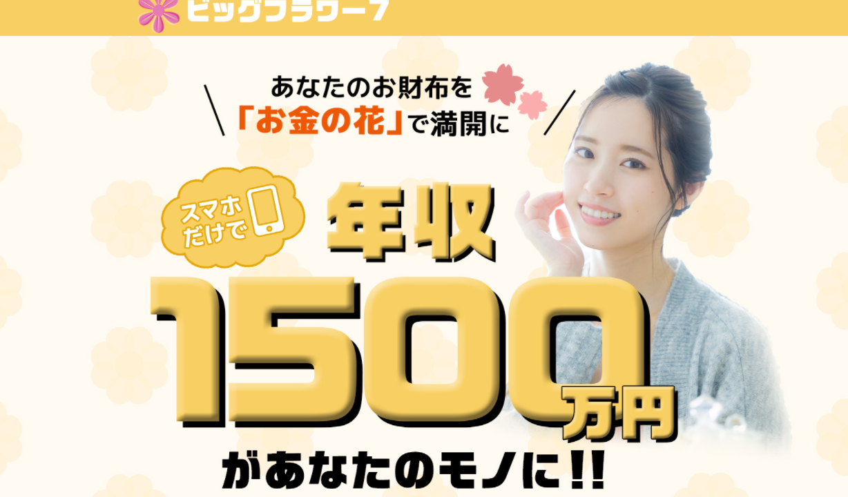 今回は、スマホの操作だけで年収1,500万円を実現出来るという三浦カノンの『ビッグフラワー7』を取り上げていきます!