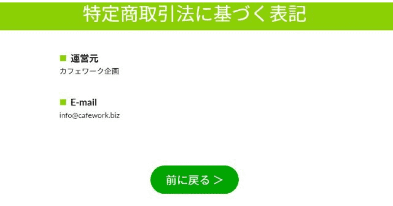 なんと、カフェワークの特商法にはこの2つしか書かれていませんでした。