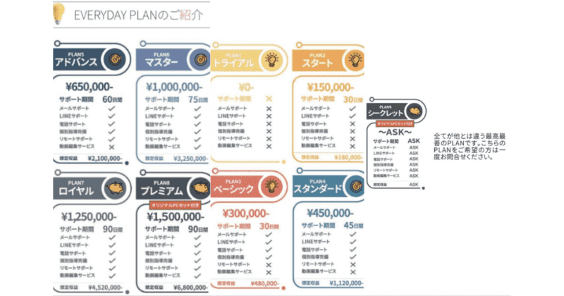 以上9つの高額プランが用意されており、どれもとても高額なプランです。