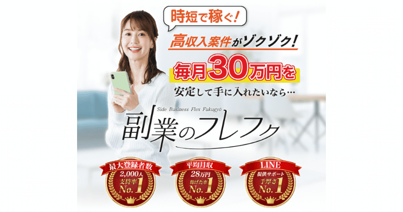 『副業のフレフク』は、毎月30万円を安定して手にすることができる高収入案件サービスです。