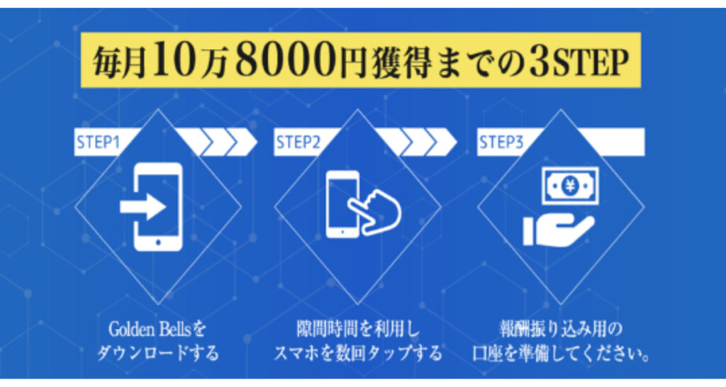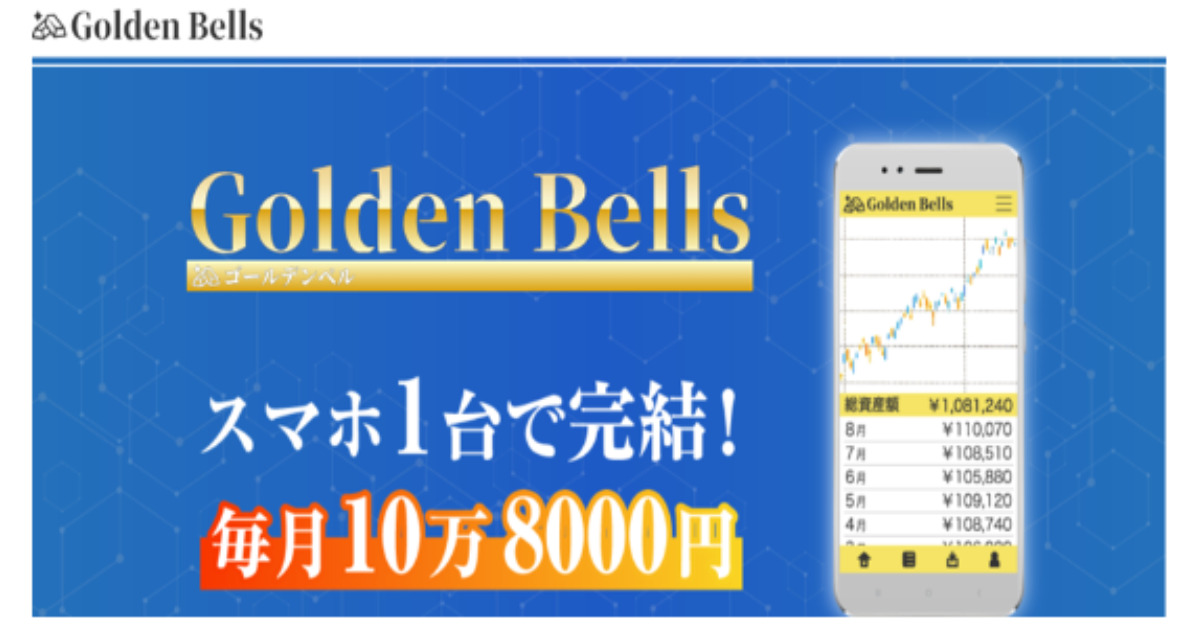 今回は、スマホ1台で毎月10万8000円稼げるという副業『Golden Bells(ゴールデンベル)』をご紹介します。