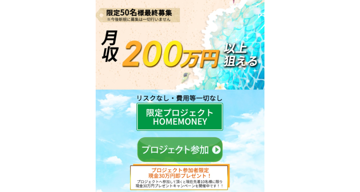 ホームマネーは、何もせずに「お金」と「時間」を手に入れられるという言葉を謳い文句にしたプロジェクトです。
