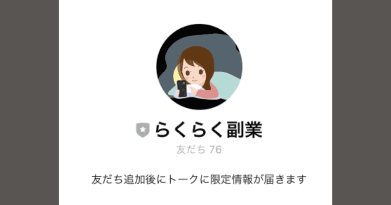 ランディングページ(LP)の「無料で情報をGET」をクリックするとQRコードが表示されるので、これを読み取ると「らくらく副業」というLINEアカウントが表示されました。