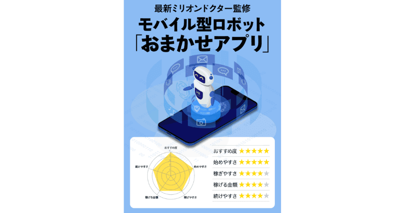 ミリオンドクターは、「モバイル型ロボット・おまかせアプリ」という自動AIがユーザーの代わりに作業をして稼いでくれるという副業です。
