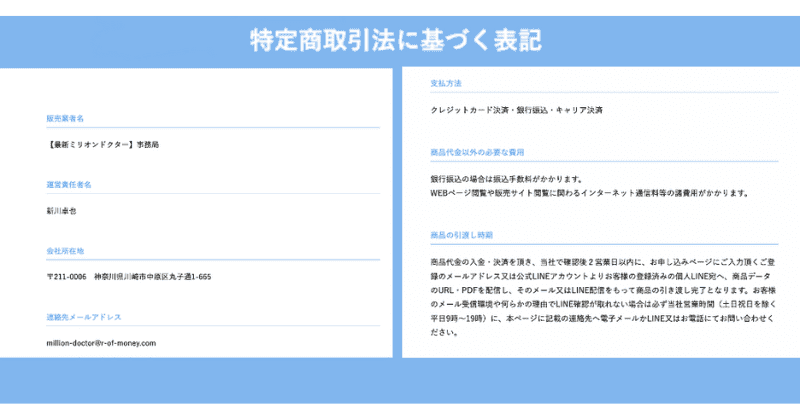 ミリオンドクター通信の特商法について
