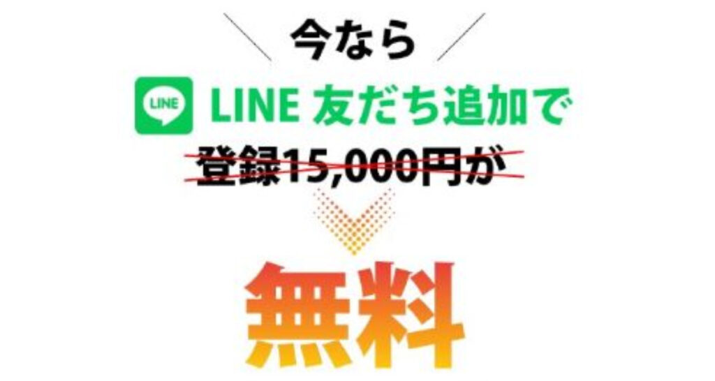 LINE登録を行い際に分かったことなのですが、「今ならLINE友達追加で登録15,000円が無料」との記載がありました。