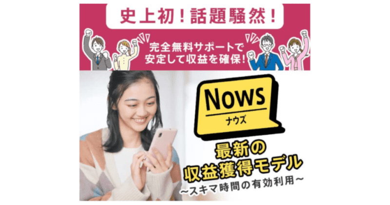 ナウズ(Nows)は、完全無料サポートで、安心して収益確保ができる案件としてサービス提供されている副業です。