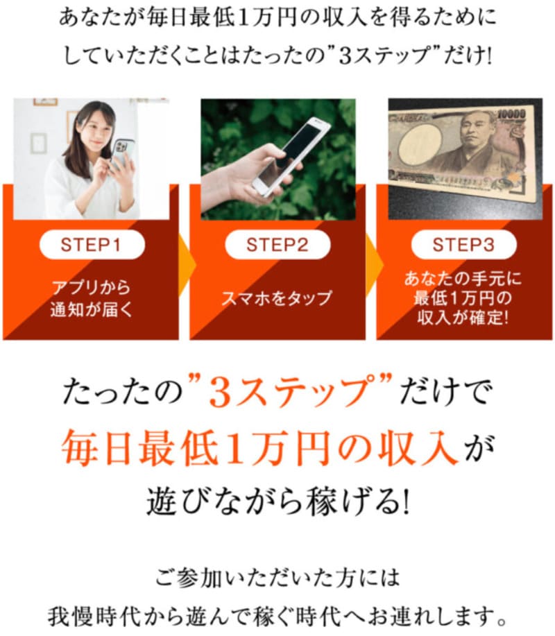 なんとスマホをタップするだけで毎日1万円が貰えるという副業になっています。