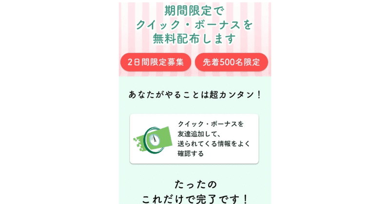 クイックボーナスは公式LINEに登録することで様々な儲かる情報が得られるサービスです。