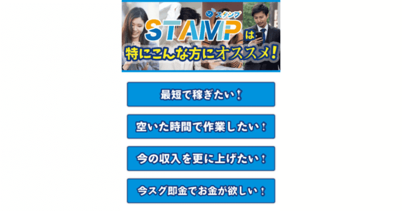 画像のように、LPでは「隙間時間がお金に!?いつものスタンプで作業完了」と記載されていました。