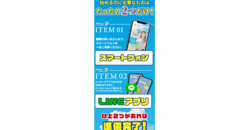 また、始めるのに必要なものとして「スマートフォン」と「LINEアプリ」の2つが挙げられていました。