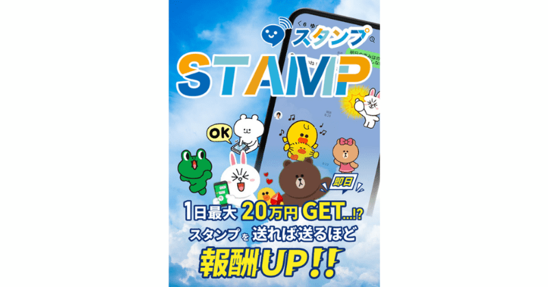 本案件は、スタンプを送れば送るほど収入がUPすると謳っていて、1日で最大20万円もの大金をカセグことが可能となっているようです。