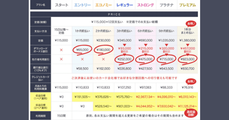 | 【プラン】 | 【費用】 | 【決済手数料】 | 【備考】 |