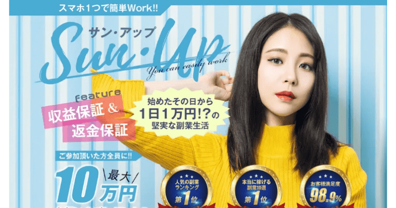 Sun・Up/サンアップは始めたその日から1日1万円を稼げるというスマホ副業です。
